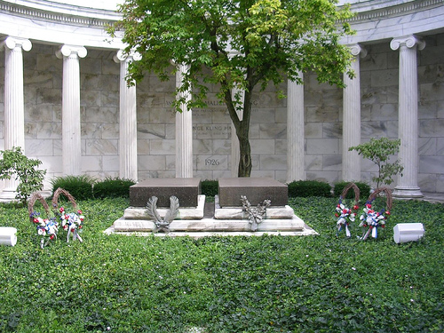 This memorial was built in honor of President Harding. He campaigned for president from his house, not far from here. When Grandma suffered amnesia after an accident, it was seeing this memorial which brought back her memories. When Julie was a kid, she used to go inside and use the "tables" to play on.