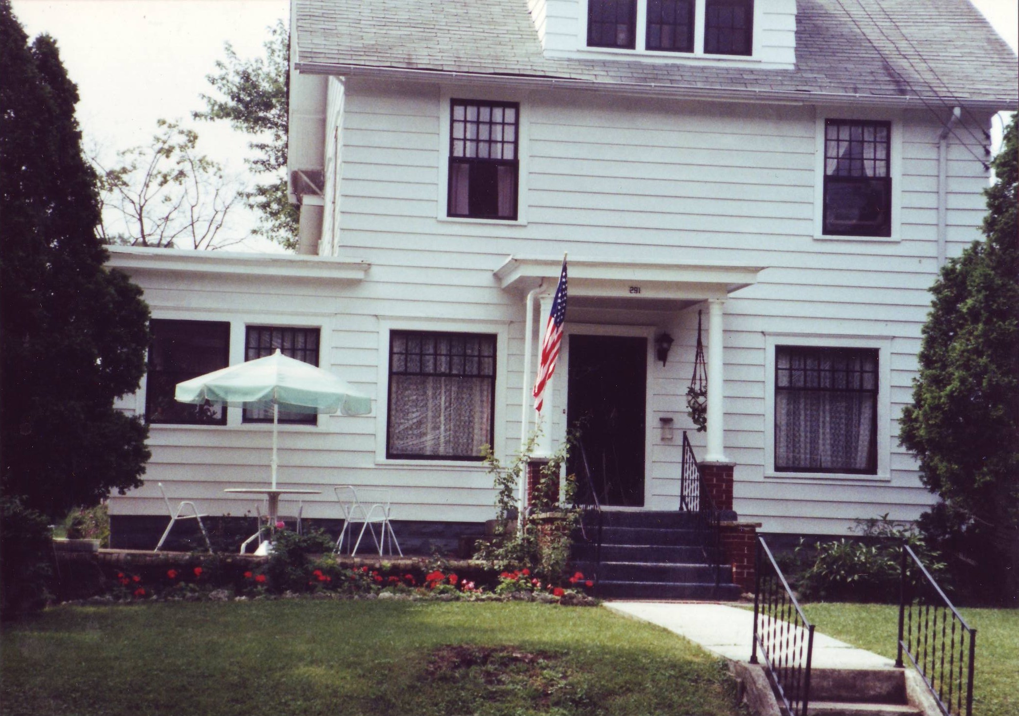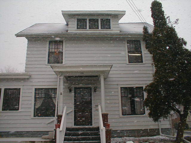 We start in front of the house. The house was originally built in 1915 and was two separate apartments with one family in the upstairs and one downstairs. Grandma and Grandpa moved in in 1955. Before that it did recieve some extensions (Sun Room, porch, TV room, 2nd half of kitchen).