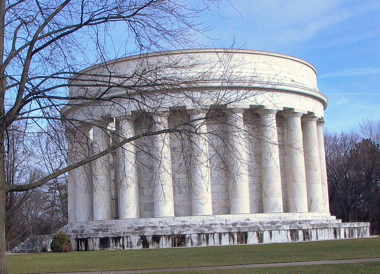 This memorial was built in honor of President Harding. He campaigned for president from his house, not far from here. When Grandma suffered amnesia after an accident, it was seeing this memorial which brought back her memories. When Julie was a kid, she used to go inside and use the "tables" to play on.