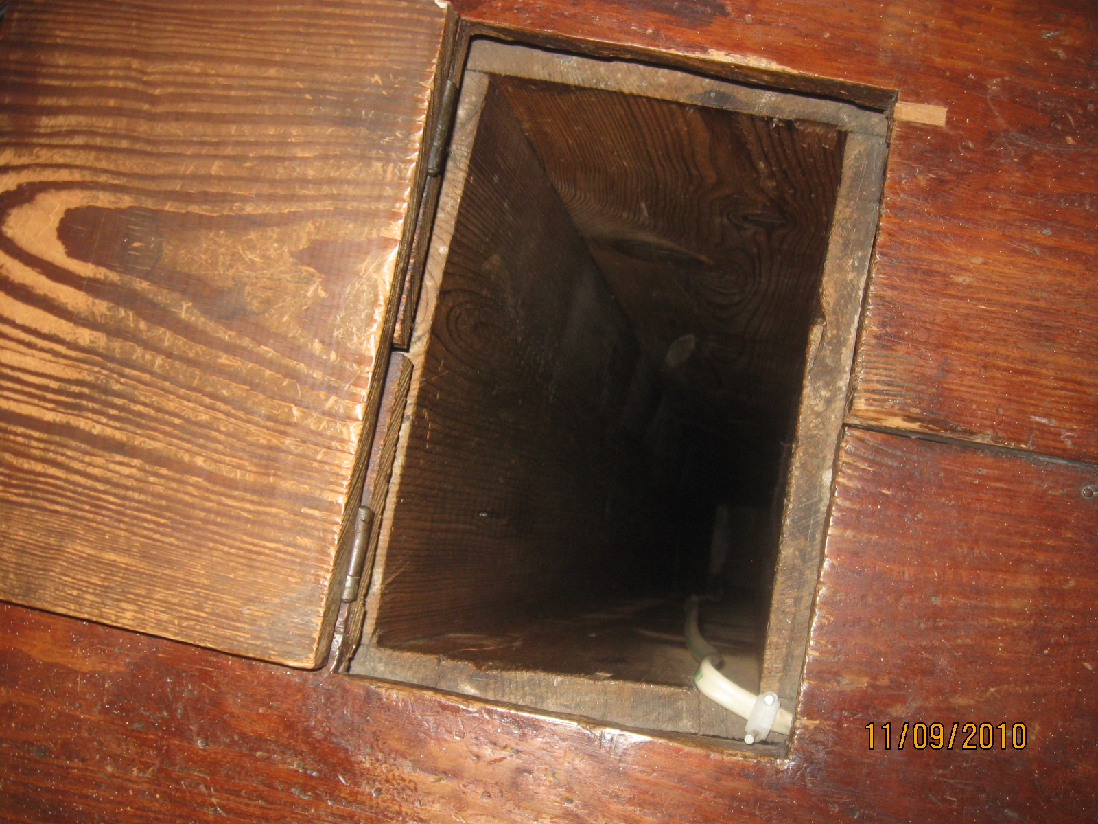 This laundry chute leads straight to the basement. It's always a favorite of kids when they learn they can throw things down it or shout to someone at the other end.