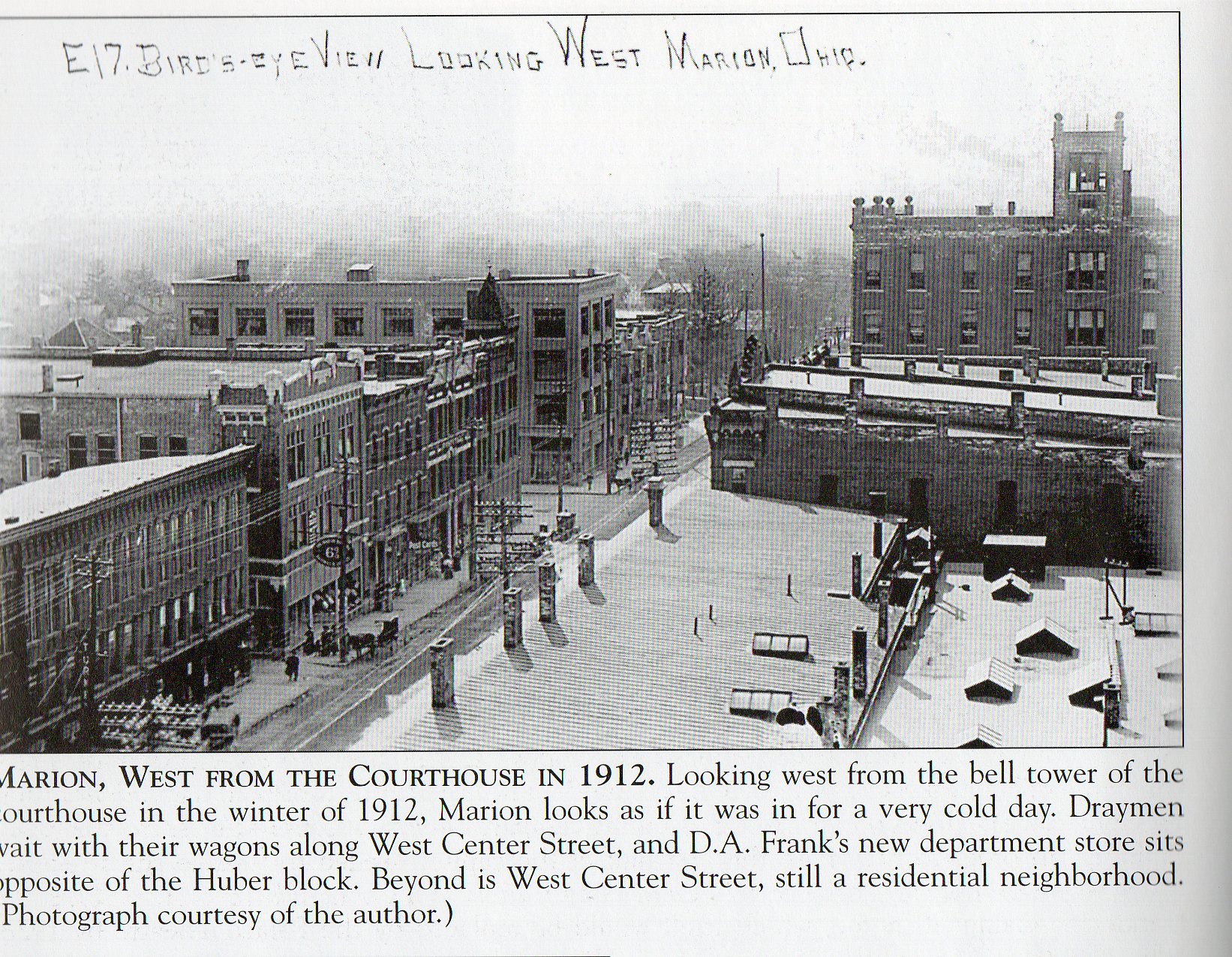 The city has a history dating back to the War of 1812. Jacob Foos, a surveyor in the army, discovered a spring on top of a hill (Jacob's Well). It became a stop-over from Fort Franklin (Columbus) to Toledo. The well is located near Marion Towers on Delaware Ave. The town was started just north of it in 1822 by Alexander Holmes and Eber Baker and the county was established 2 years later.