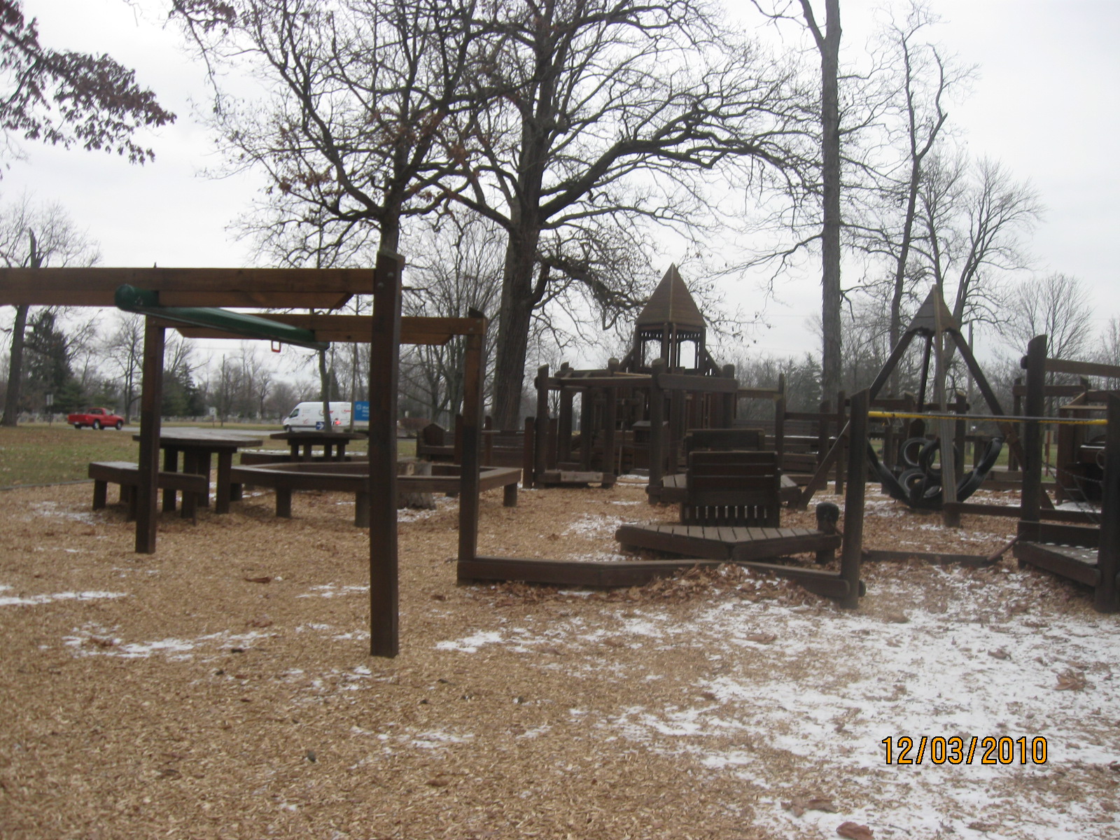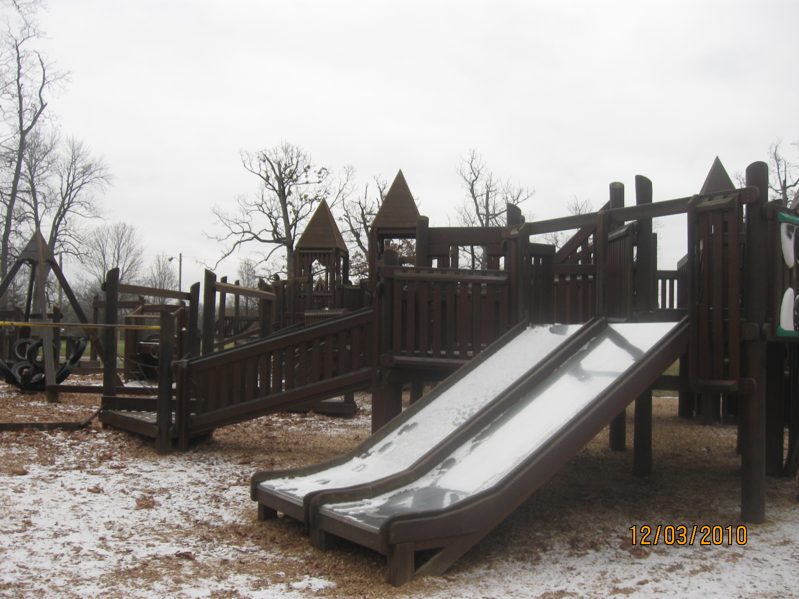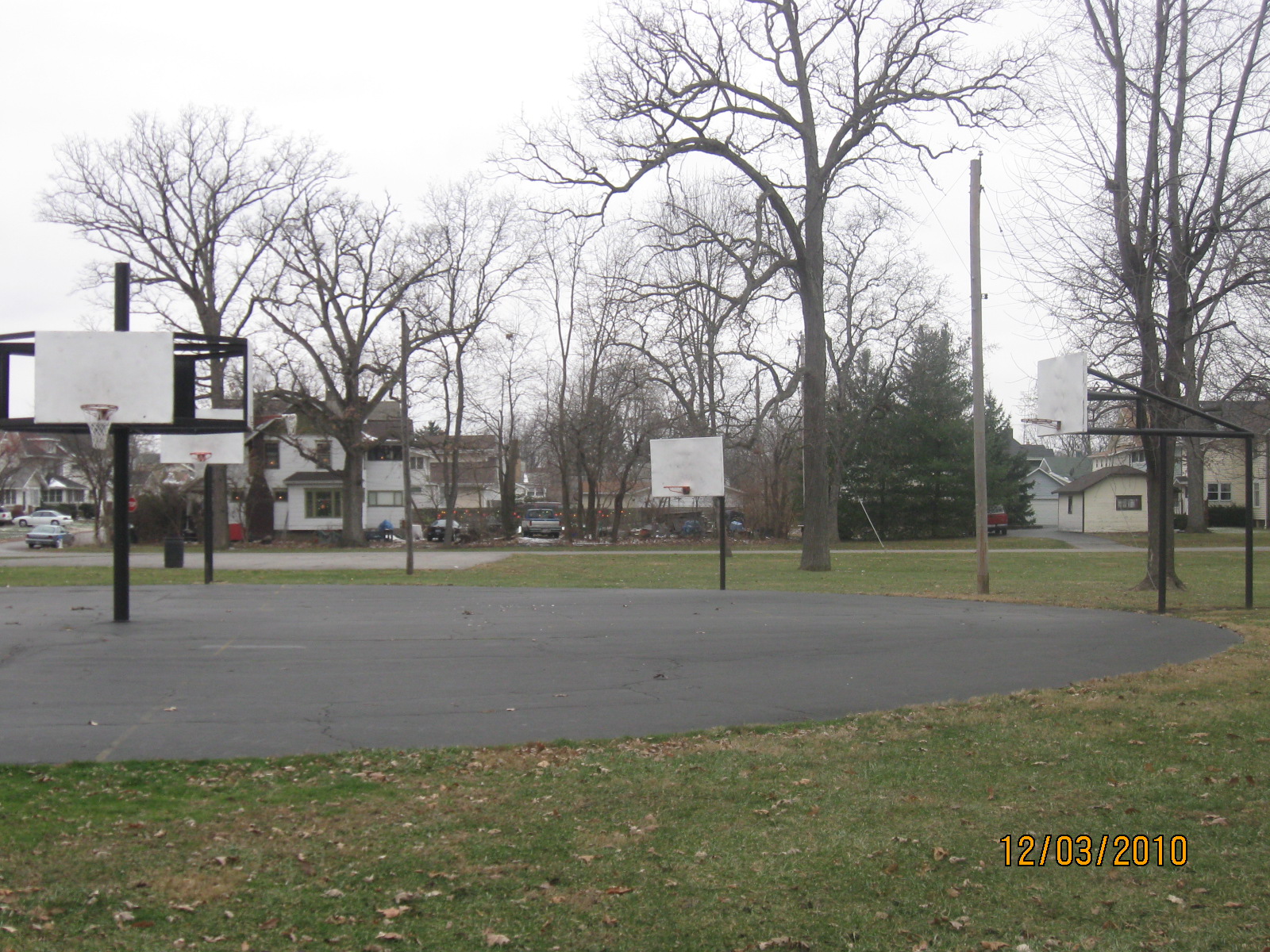 The park is just across from McKinley Lake. Watch the video to walk to the park. The park has a big play area built in the early 90s (replacing older equipment), basketball hoops, and room to run around.
