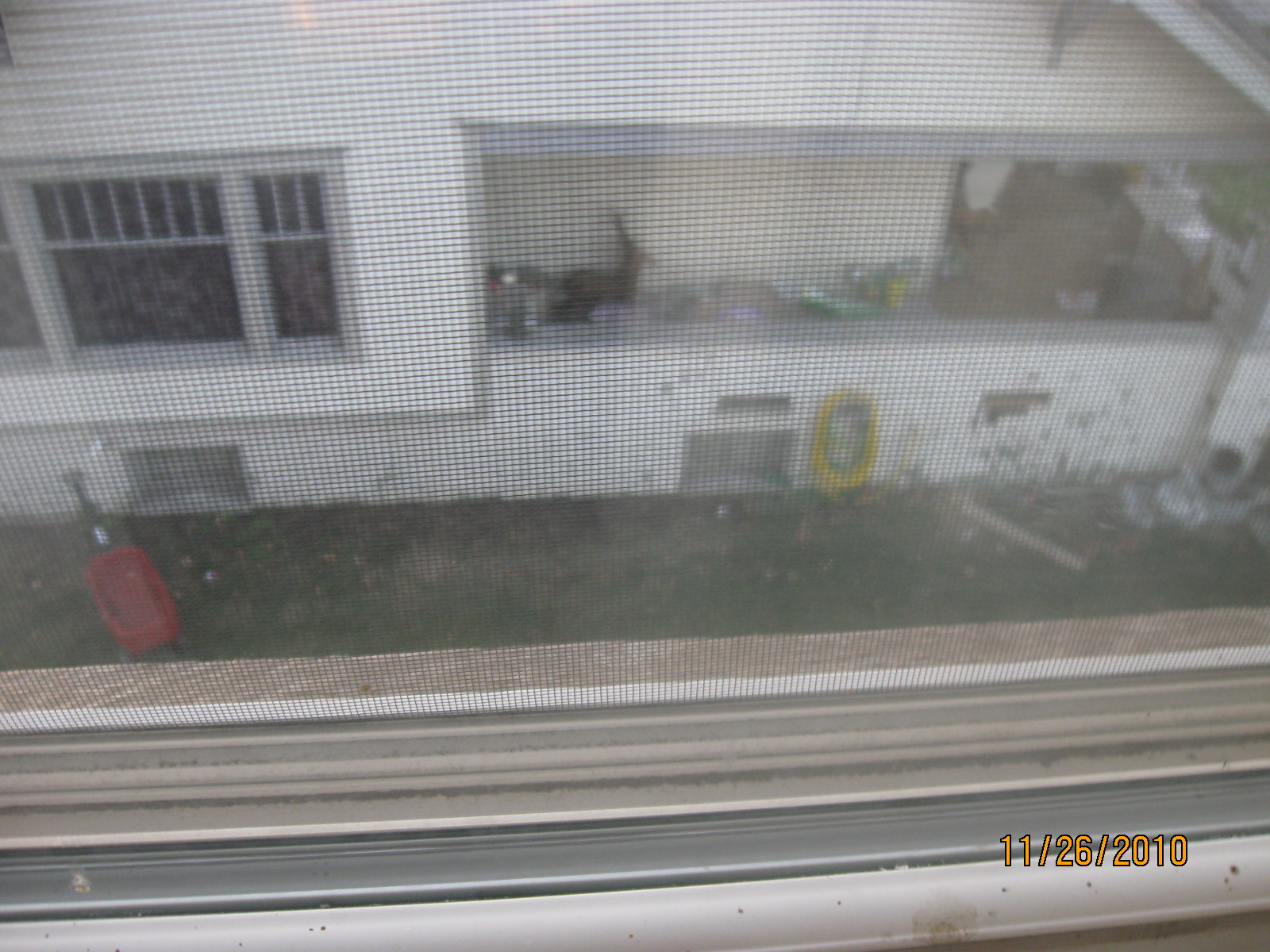 14. Which window is this looking out? 15. The box of toys can be seen in pictures in two different rooms. Which rooms are they?