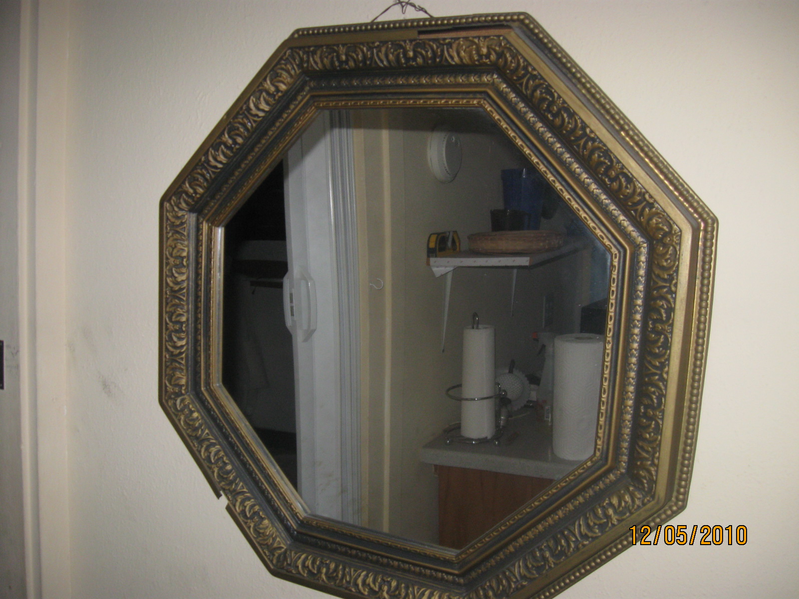 9. This image is of a mirror in the laundry room. Where else was this mirror located? (Hint: It's visible in at least one older picture). 10. What street was the original church structure for St. Mary's located on?